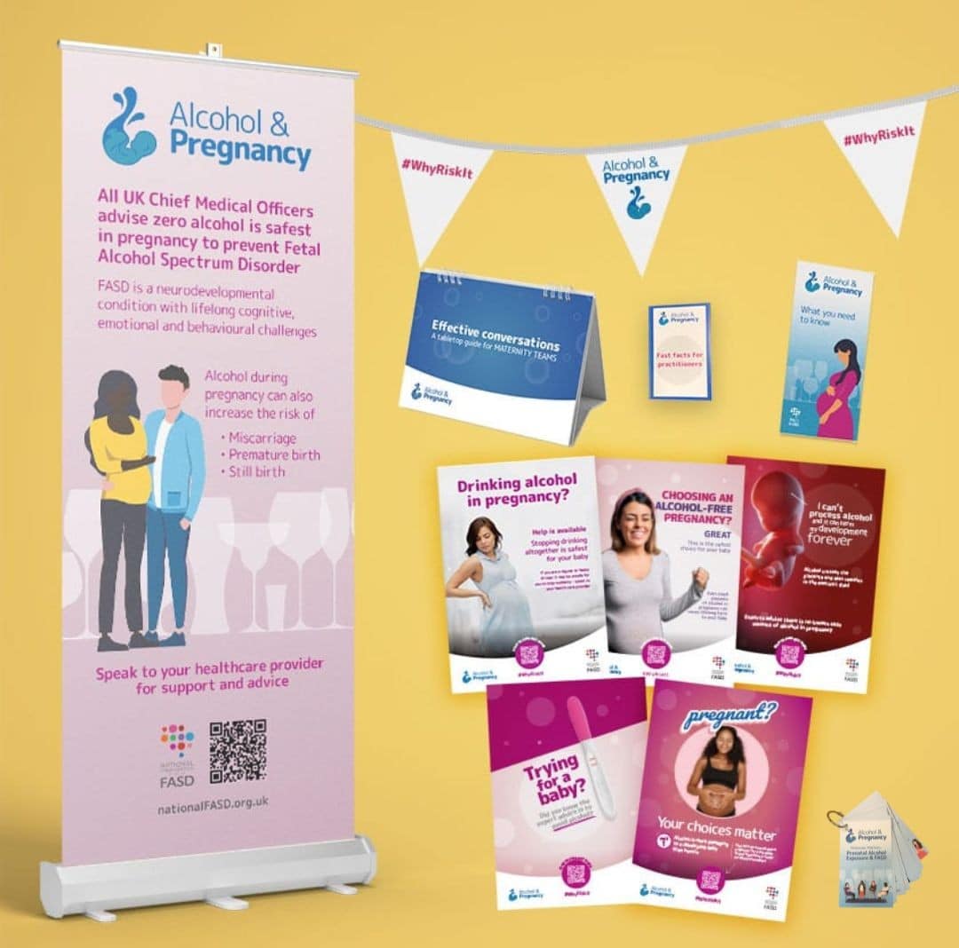 The midwives pack contains 1 x 10m bunting, 1000 alcohol and pregnancy leaflets (editable to add local contact details), 20 x Midwives Matters lanyard cards, 20 x tabletop guide, 25 packs of 5 posters (as seen on TV!), 1 x roller banner (to be sent separately), and 100 z-cards. Digital download of leaflets and posters.